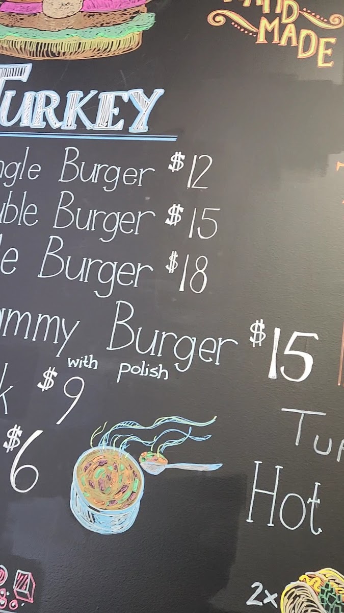 Get ready to savor the ultimate turkey burger experience with our mouth-watering turkey burger and turkey polish sausage combo, served open-face on top of each other for double the deliciousness.